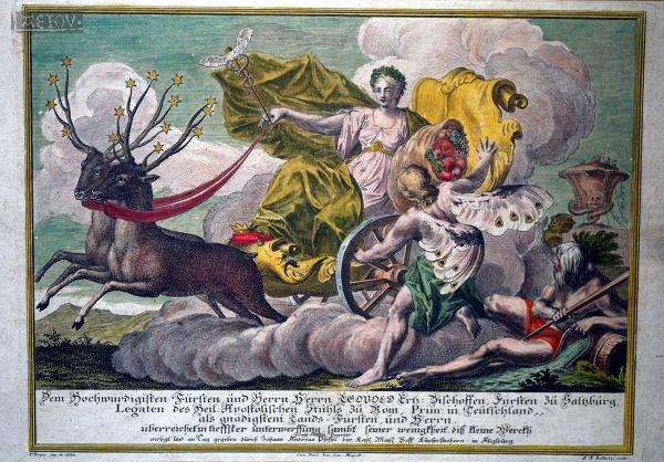 [Bild: 32671] Darstellung der Pomonaallegorie aus der um 1750 entstandenen Stichsammlung von Anton Danreiter.